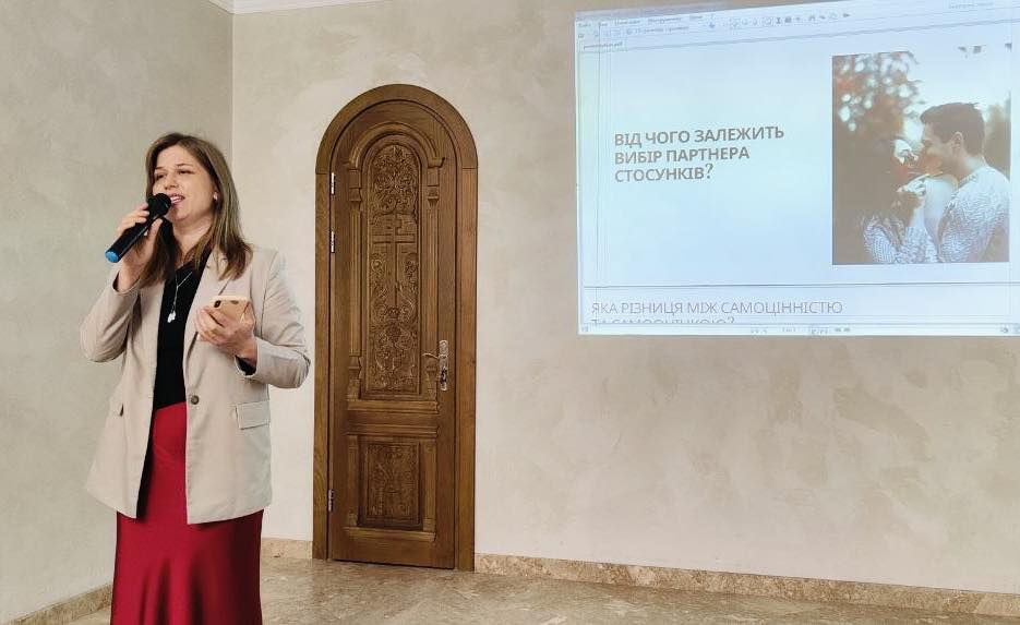 Практичний психолог матушка Іоанна Шемедюк зосередилася на понятті самоцінності. Вона пояснила, як внутрішній стан людини впливає на її вибір партнера та сценарії стосунків. Вона також охарактеризувала шлях до здорових стосунків як процес особистісного зростання, в якому важливу роль відіграють усвідомленість, чесність із собою та готовність до змін.