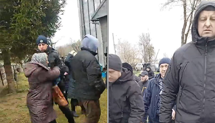 Кількох жінок, які намагалися їм завадити, бандити повалили на землю. З криками «геть московського попа!» силовики ПЦУ на чолі з серійним рейдером Романом Грищуком стали ламати двері храму.